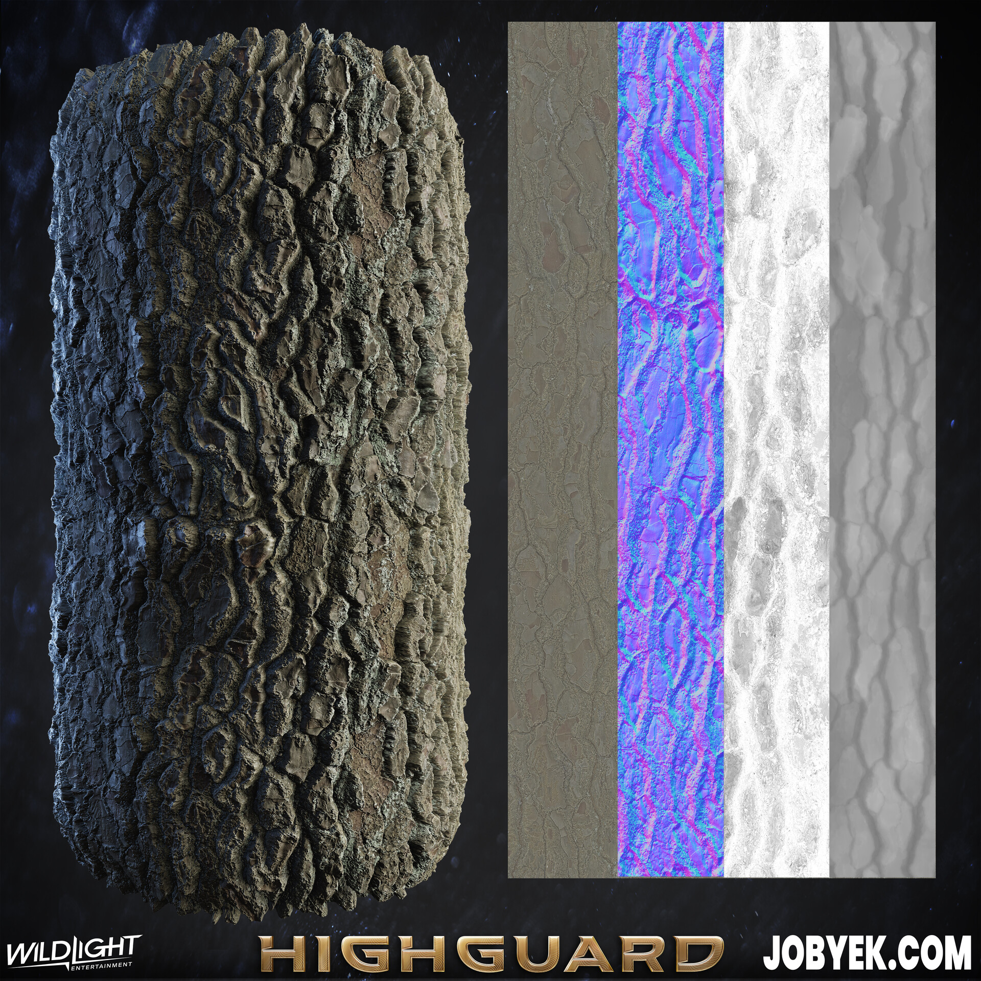 Here's all the tree bark tileables and unique sculpted trunks that I worked on across the various tree variants in the game. For this project, I wanted to challenge myself to stay in Substance Designer for the whole texturing process rather than jumping into Maya/Zbrush to establish a base sculpt to bake from like in previous projects (Apex/Shadow of War). In the end this enabled to move much faster on tree barks - getting them done in 1-2 days tops. Generally, for production speed's sake, I'd start from a Megascans texture set and bring it into Designer and heavily modify it to my needs and references I'm looking at.