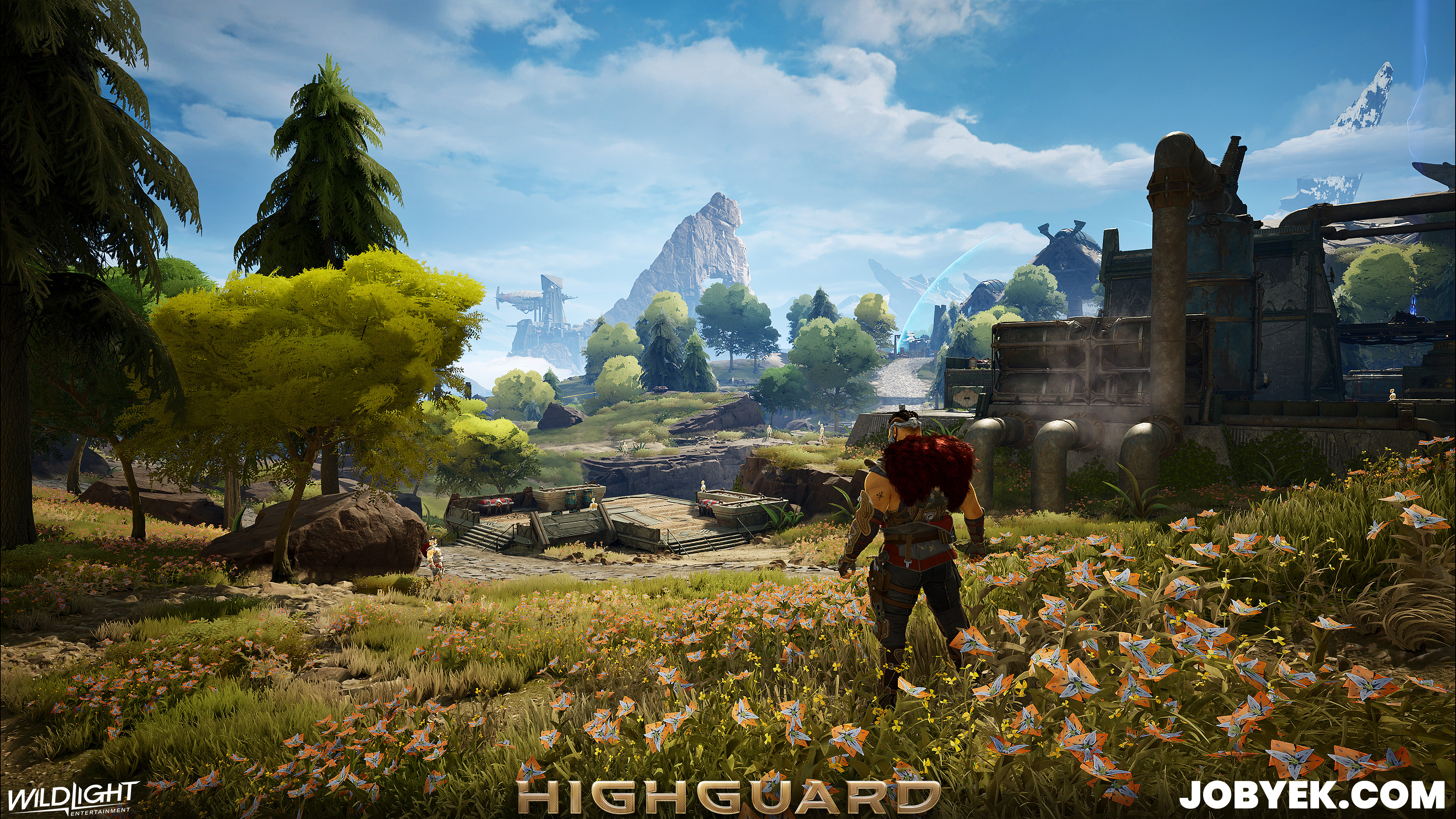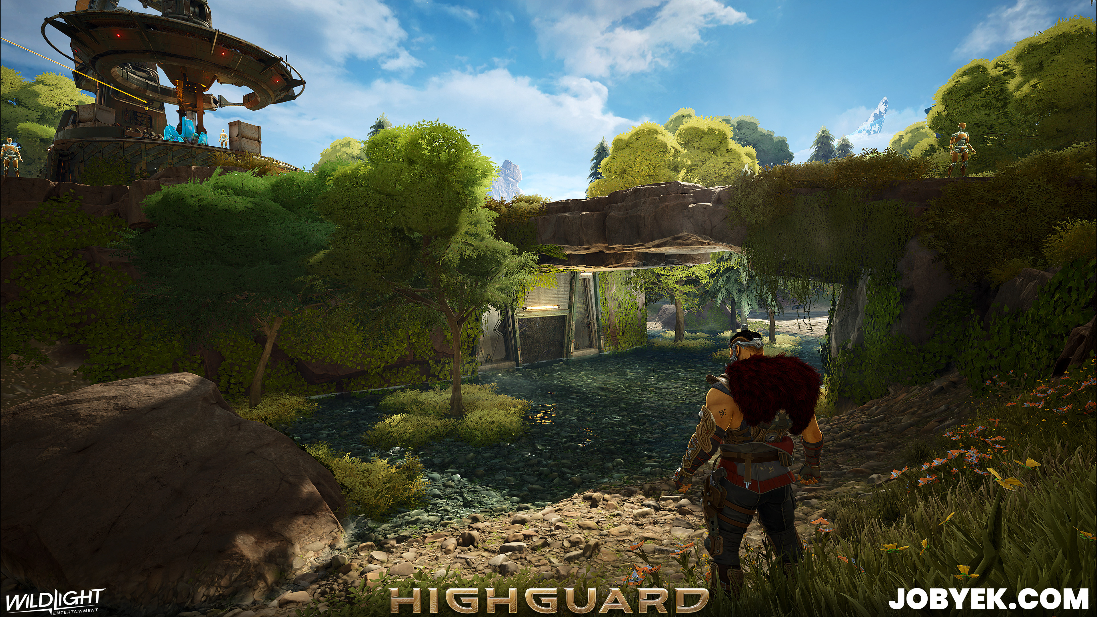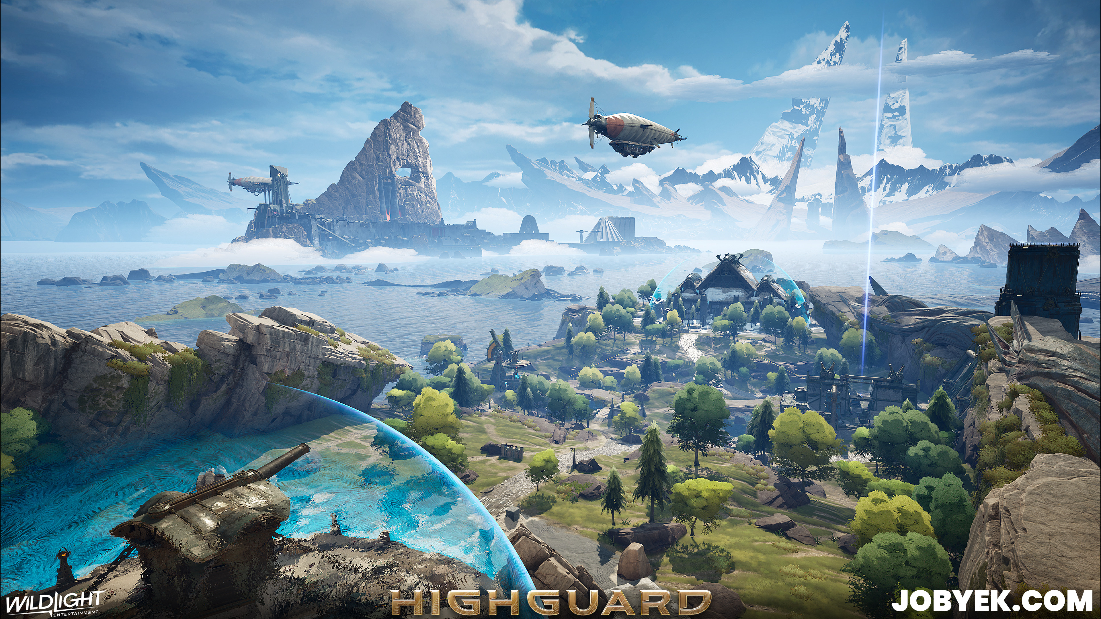 With the vista, it was fun contextualizing this island relative to Headwall, where Wardens live and start matches from, before they teleport to Highguard. Fleshing out the larger Highguard continent in the distance as well was fun to play with as well. Always loved Gabe's concept of it with it flange rocks and spires.