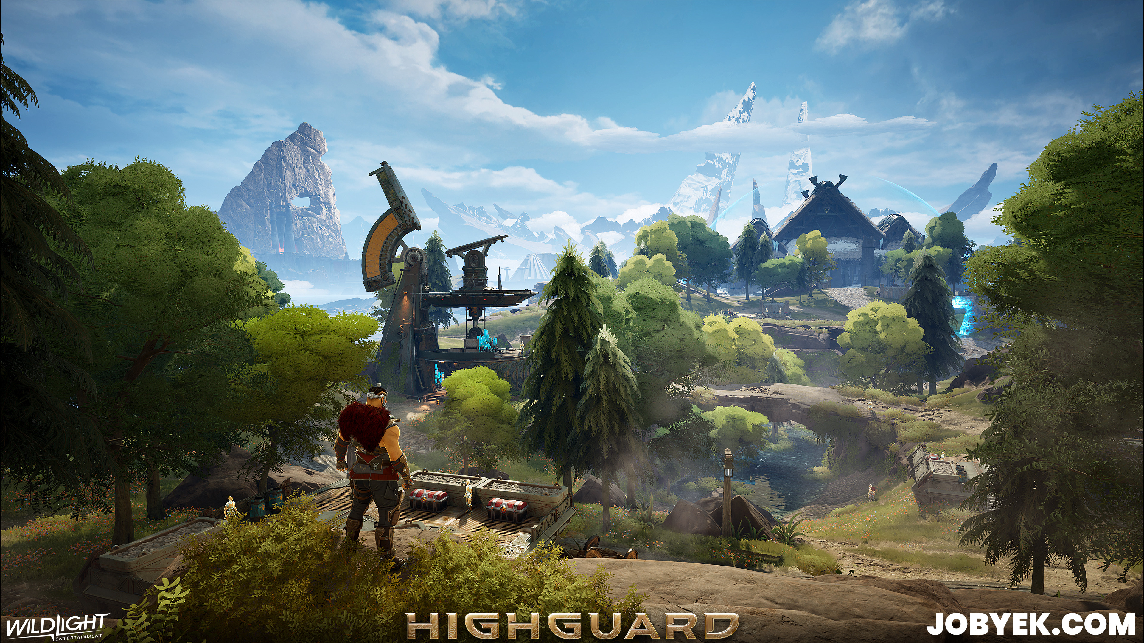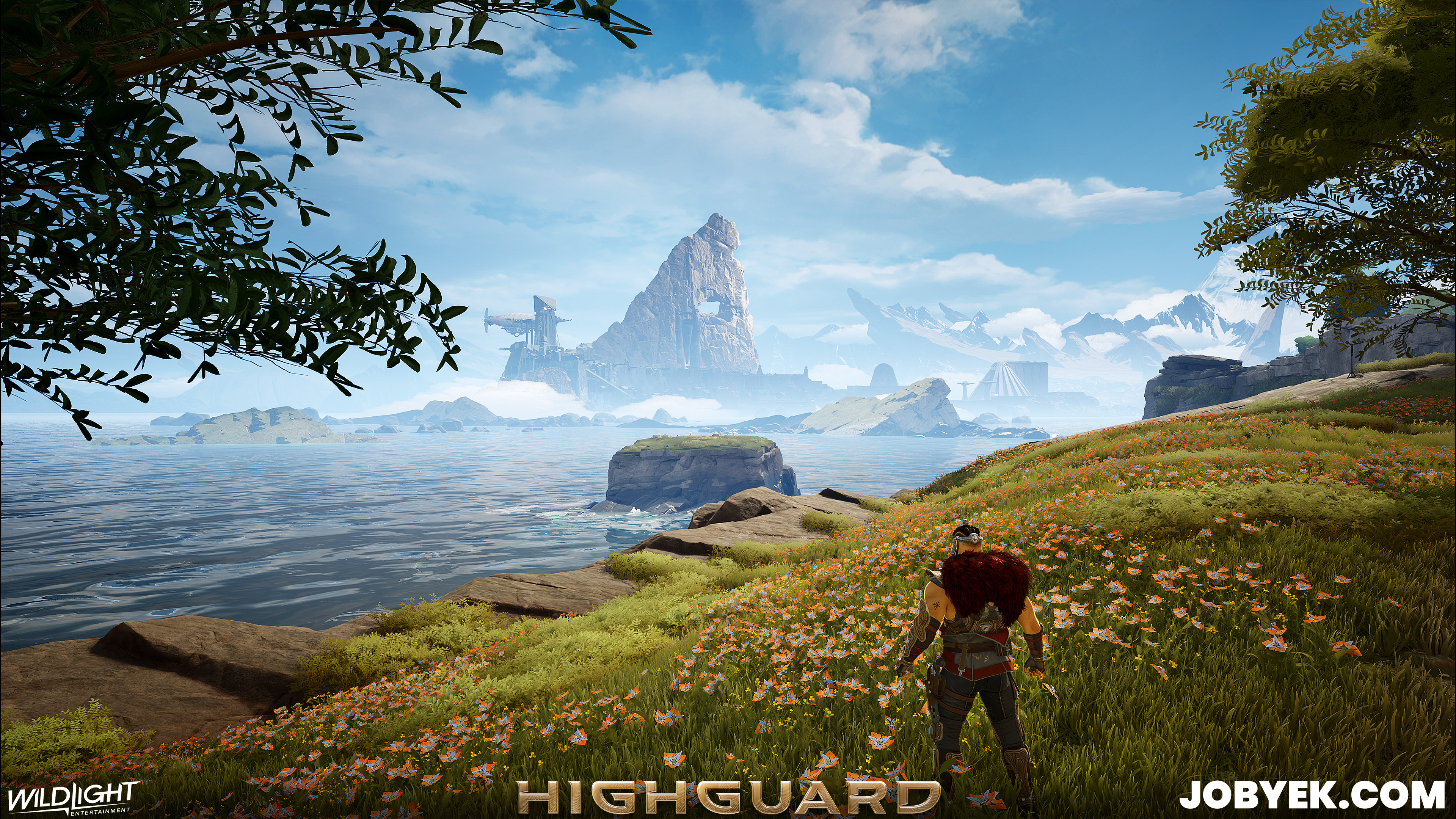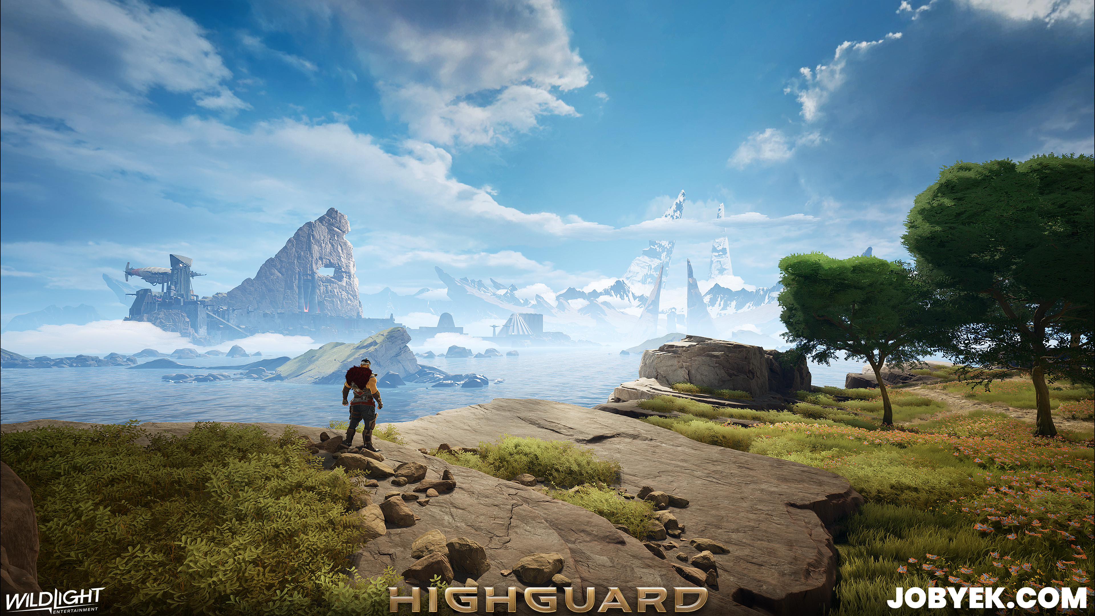 With the vista, it was fun contextualizing this island relative to Headwall, where Wardens live and start matches from, before they teleport to Highguard. Fleshing out the larger Highguard continent in the distance as well was fun to play with as well. Always loved Gabe's concept of it with it flange rocks and spires.