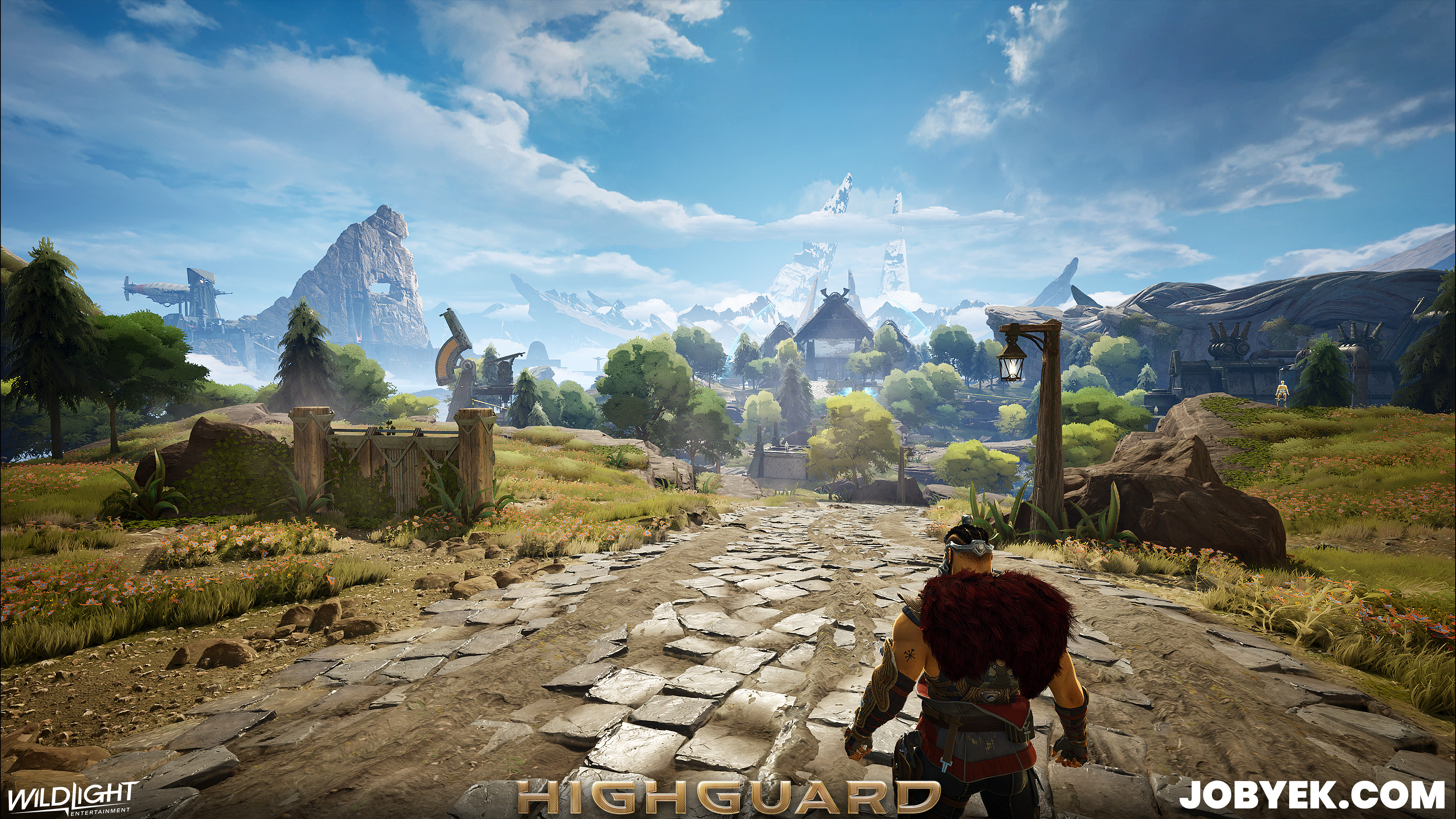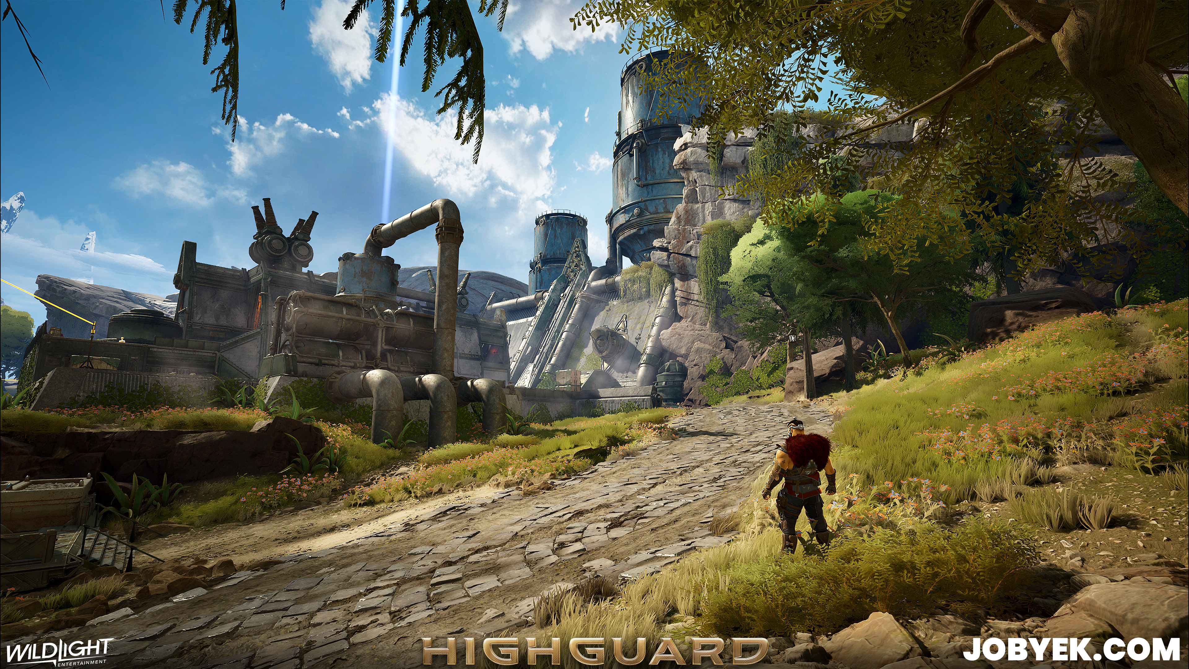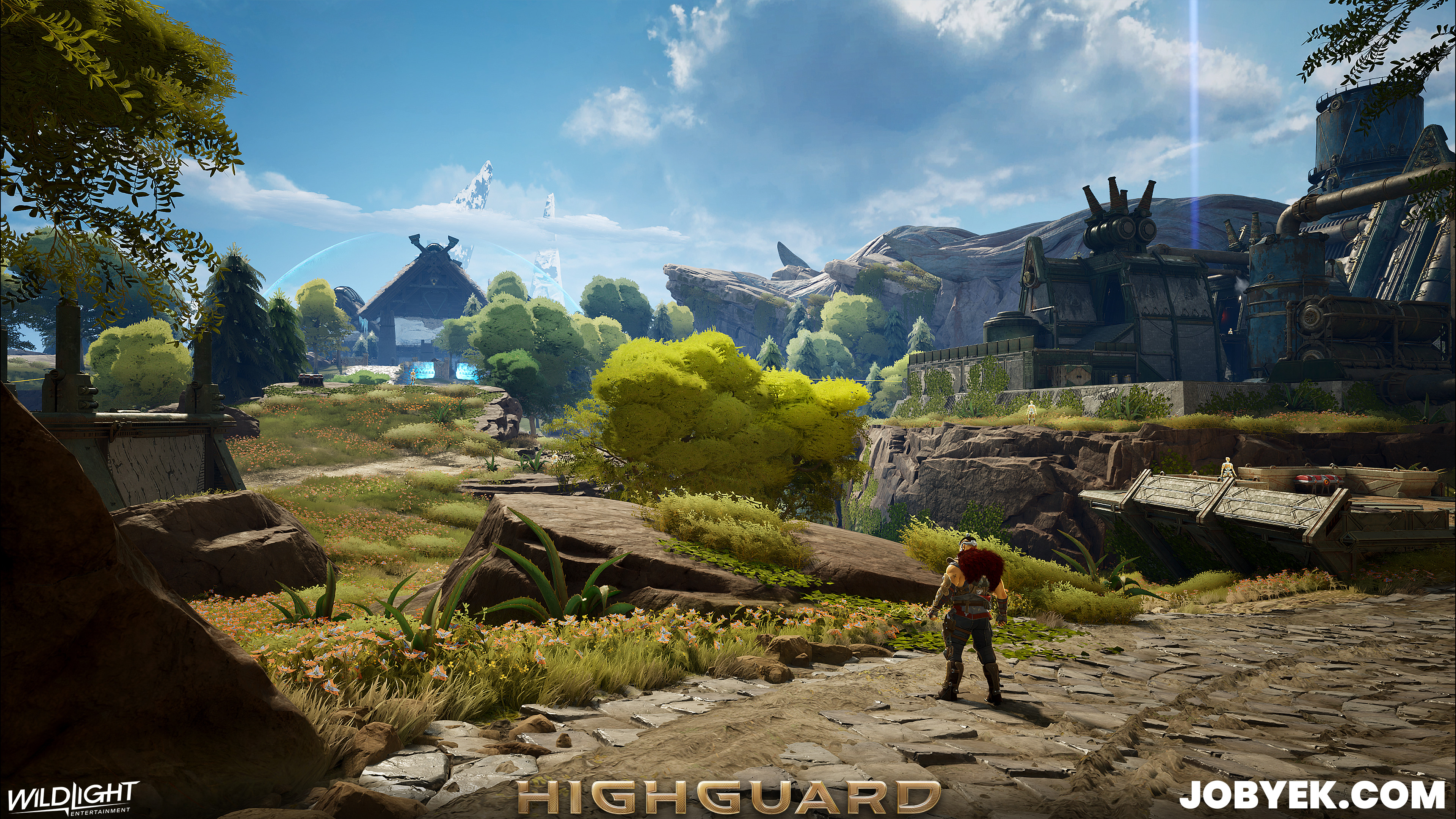 With the vista, it was fun contextualizing this island relative to Headwall, where Wardens live and start matches from, before they teleport to Highguard. Fleshing out the larger Highguard continent in the distance as well was fun to play with as well. Always loved Gabe's concept of it with it flange rocks and spires.