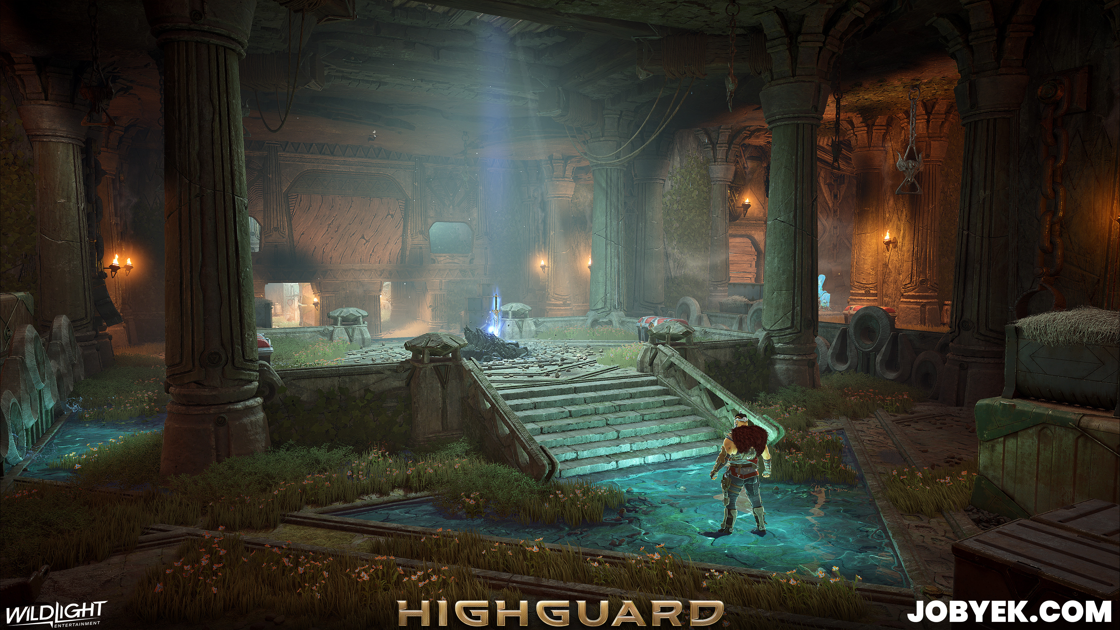 Environment storytelling-wise, it was fun to play with the idea of little dragon hatchlings being born and chained in this rookery - added lots of chains and little hay beds throughout the space for the many dragons that once bred and lived here.