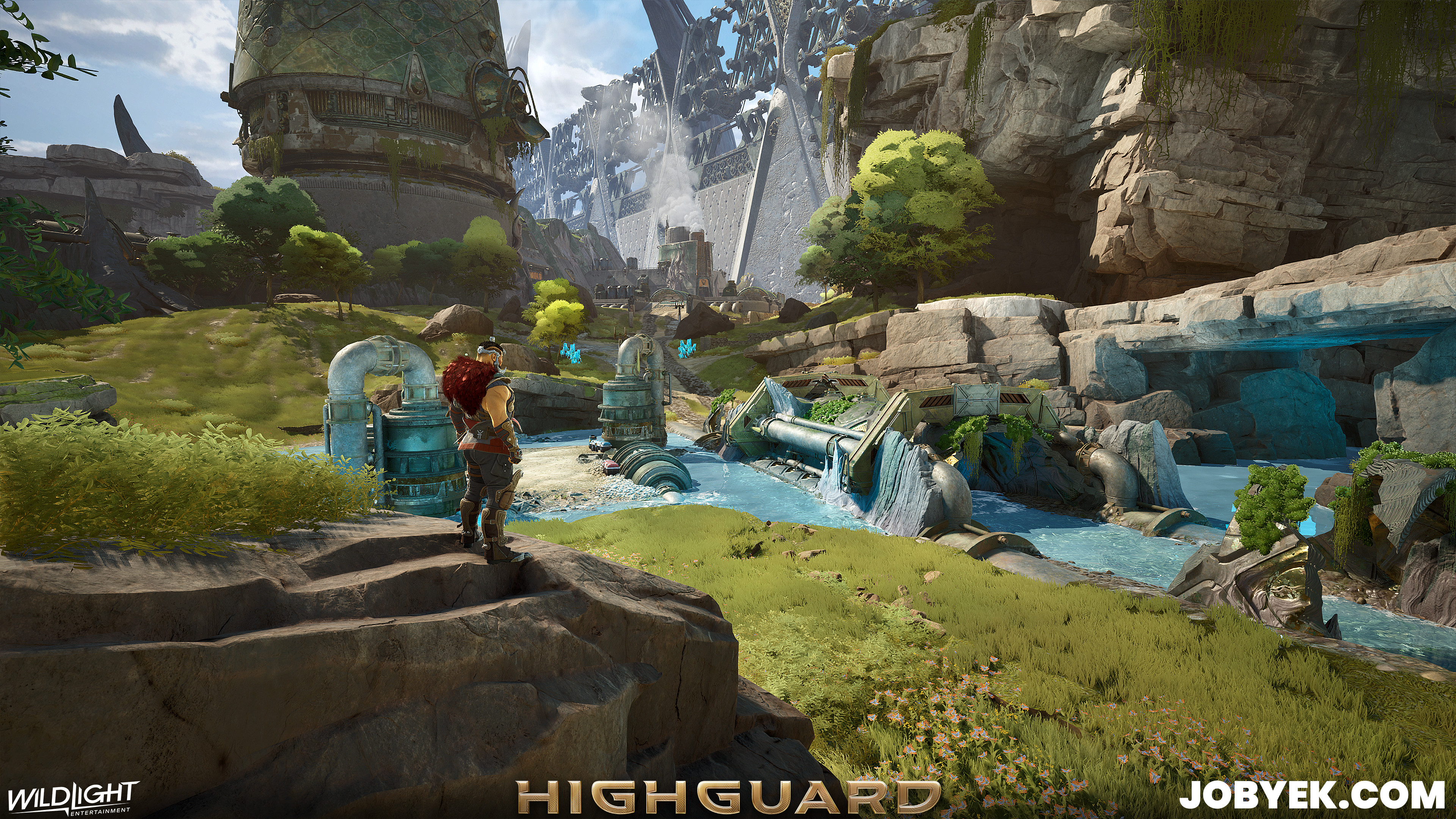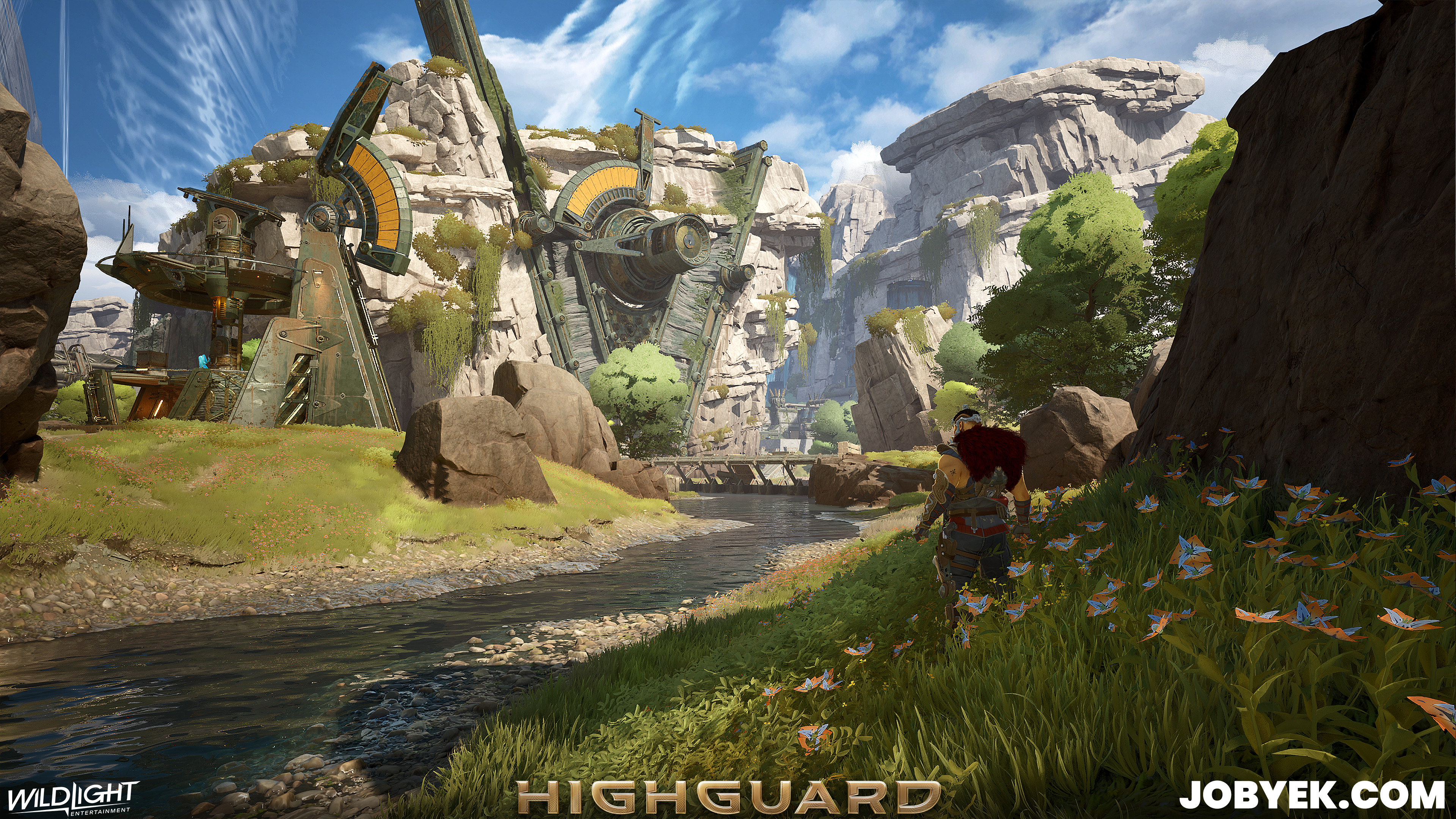 Rivermark was one of the very first maps we worked on when Production kicked off in 2024 on this iteration of Highguard. Its biome was one that was worked on as far back as very early pre-production in 2023 in a Art Beautiful Corner, before I even joined. Once I joined, I was tasked with taking over the biome style established in the Beautiful Corner, refining it heavily, creating/refining all the foliage in the biome and bringing it across the finish line in the real gameplay map of Rivermark.
