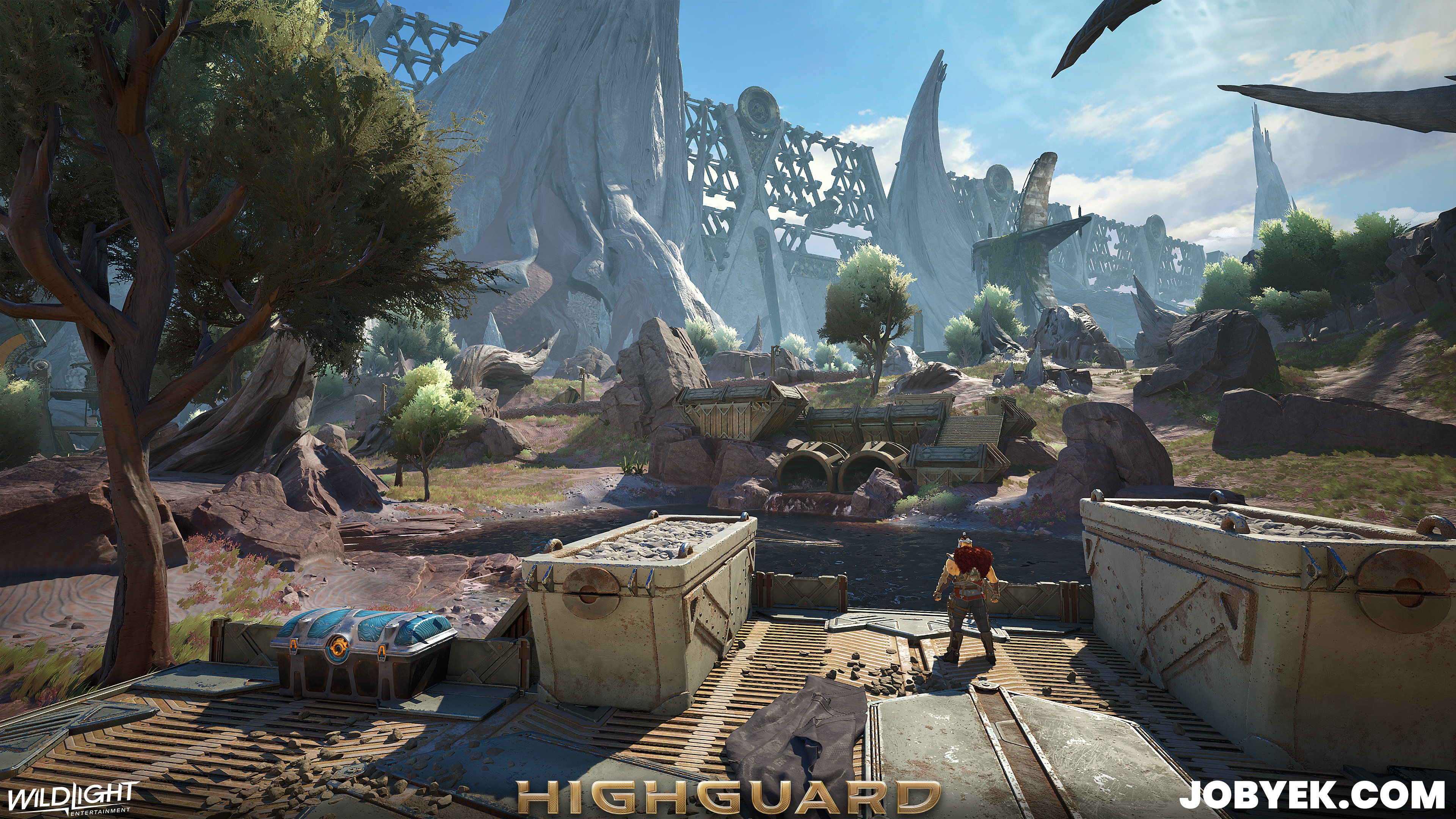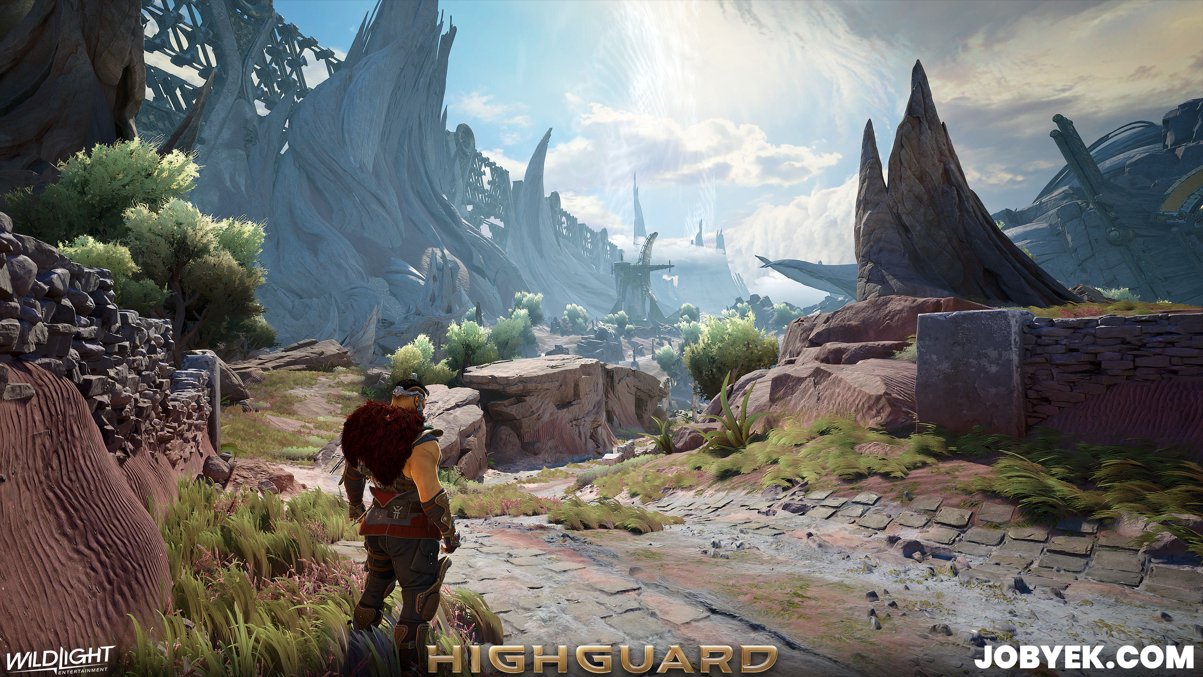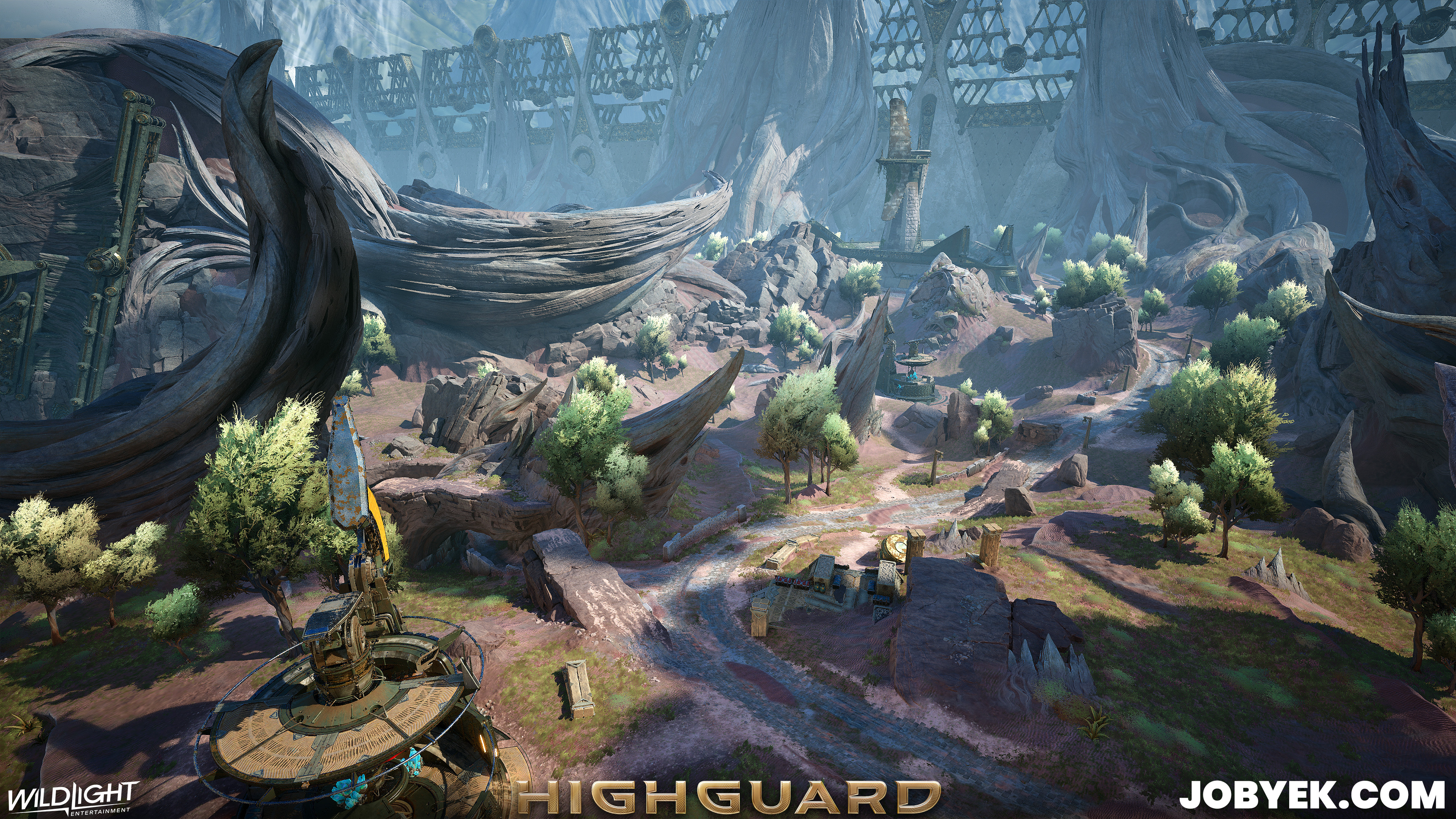 Dustline was also one of the very first maps we worked on when Production kicked off in 2024 on this iteration of Highguard (it's the sister map to Rivermark, as its on the other side of the wall). Its biome style was the 2nd one we worked on after Rivermark's and it was a challenging one due to the Vesper that flows through the space. We constantly had to balance noise levels and readability and it took a lot of back and forth within art itself with our Art Director Taube, our Concept Lead Gabe, Derek (he made the great Vesper kit) and myself as well as with Design.