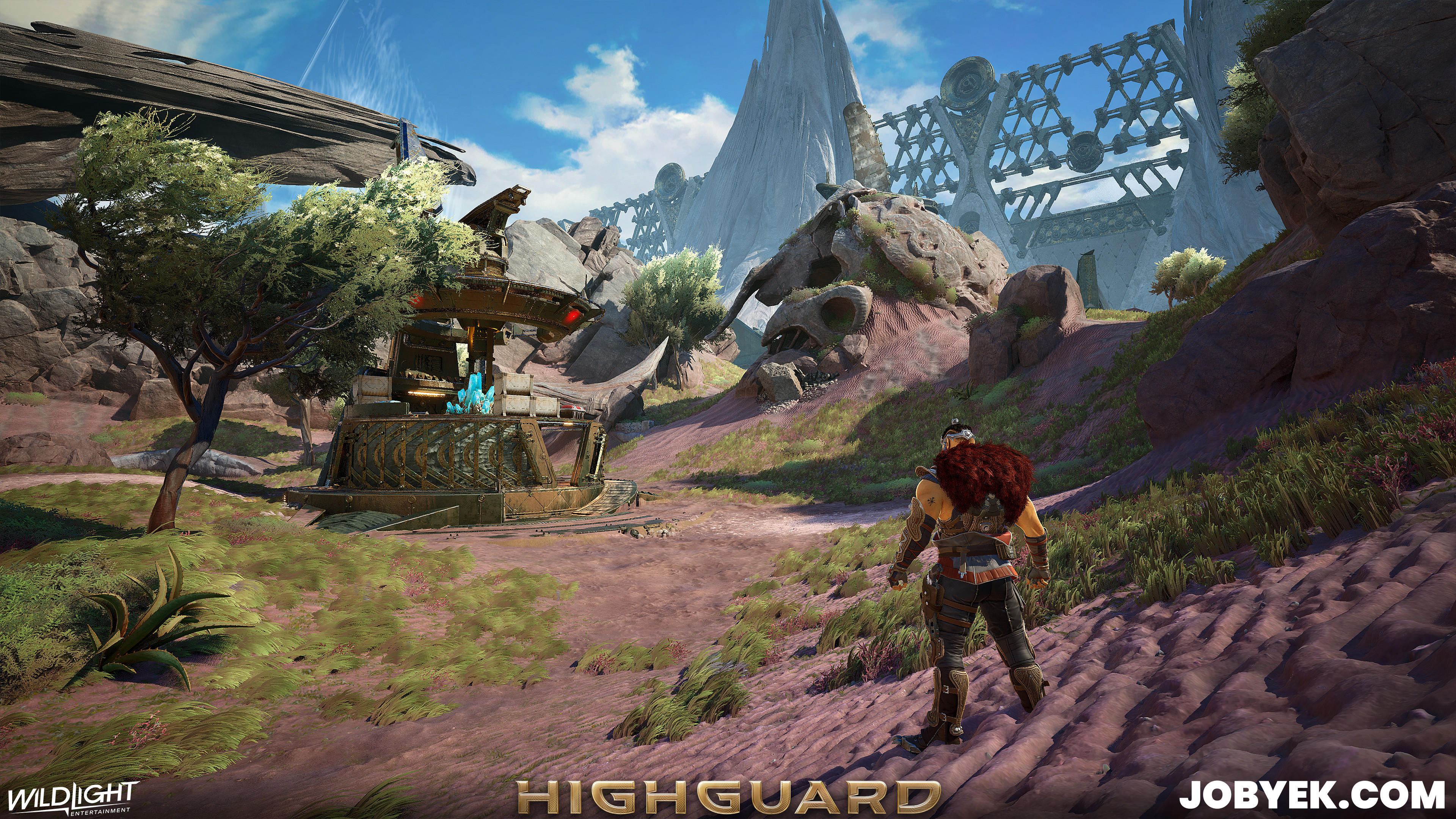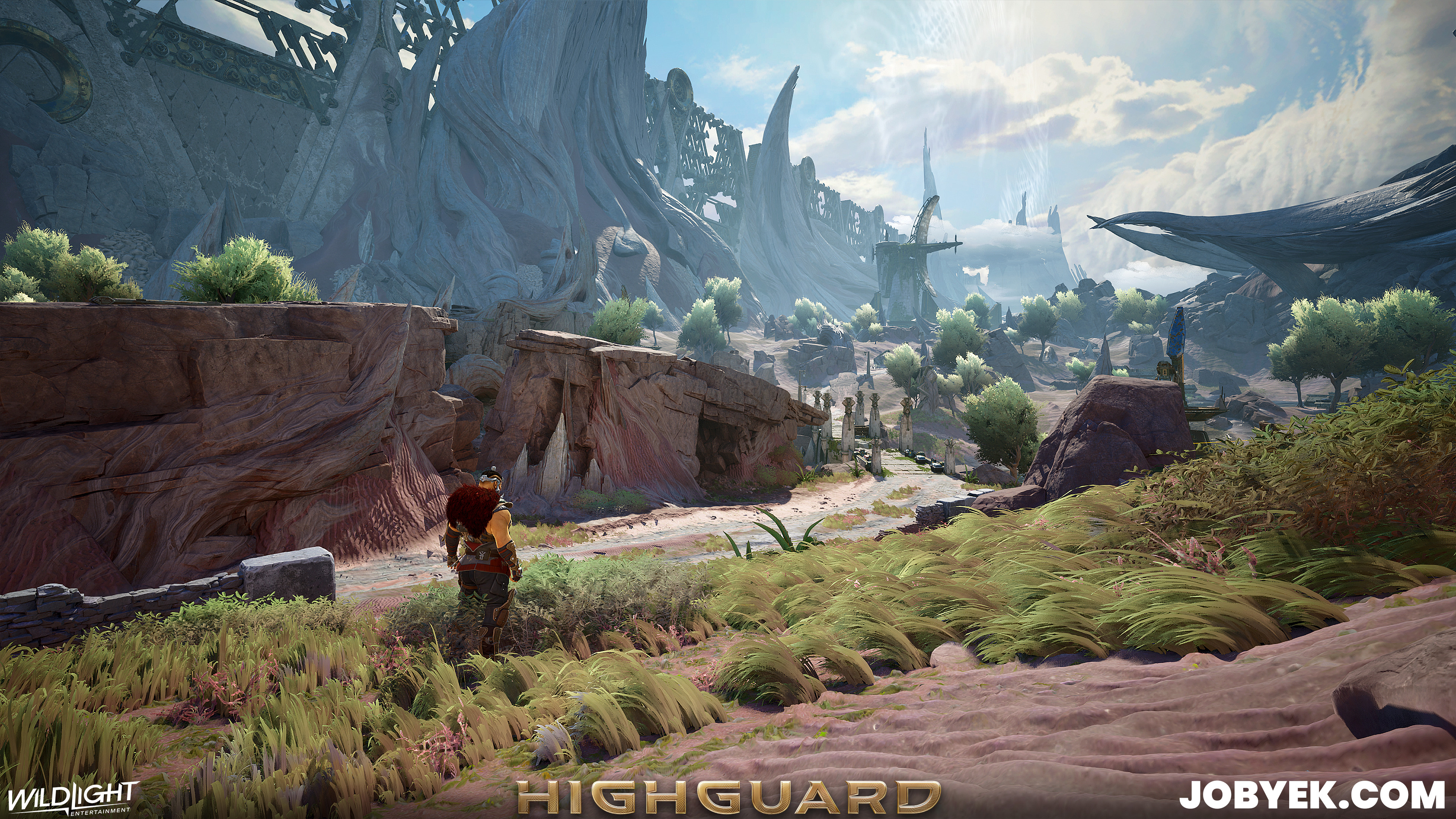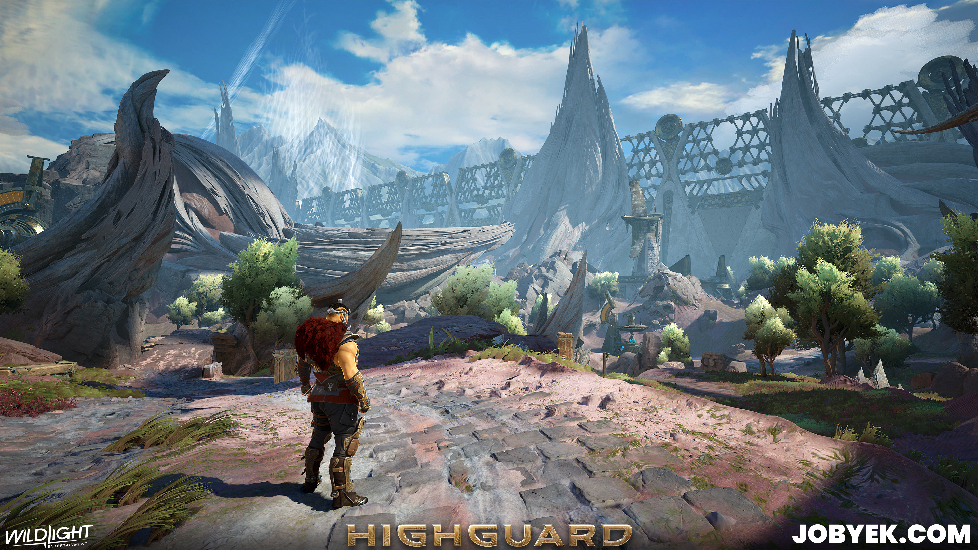 Dustline was also one of the very first maps we worked on when Production kicked off in 2024 on this iteration of Highguard (it's the sister map to Rivermark, as its on the other side of the wall). Its biome style was the 2nd one we worked on after Rivermark's and it was a challenging one due to the Vesper that flows through the space. We constantly had to balance noise levels and readability and it took a lot of back and forth within art itself with our Art Director Taube, our Concept Lead Gabe, Derek (he made the great Vesper kit) and myself as well as with Design.
